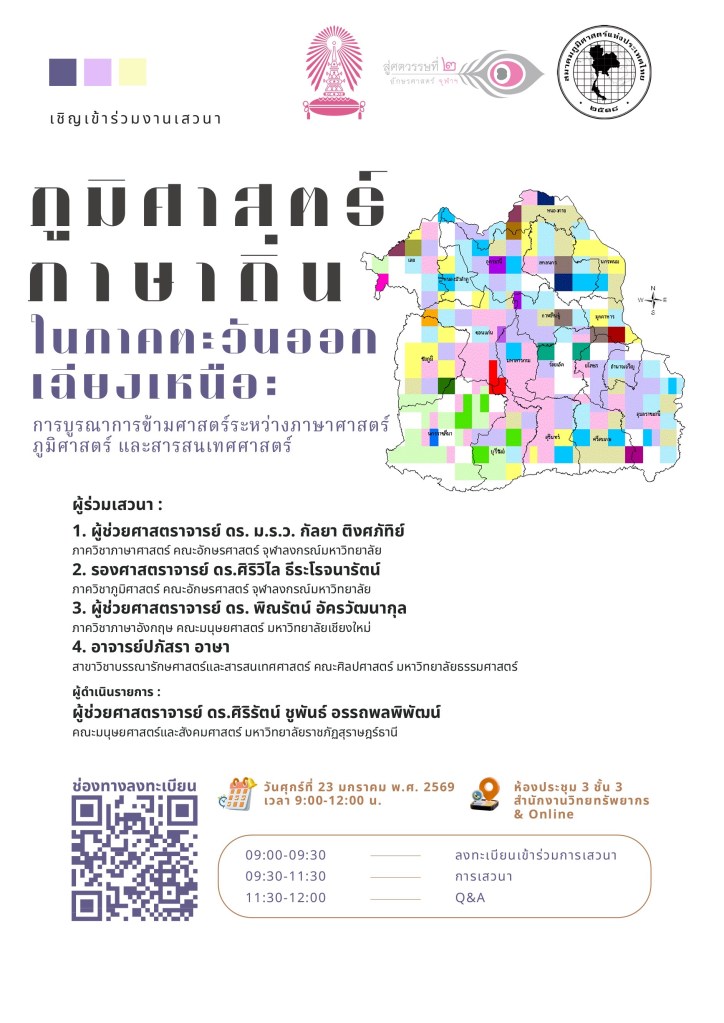 “ภูมิศาสตร์ภาษาถิ่นในภาคตะวันออกเฉียงเหนือ: การบูรณาการข้ามศาสตร์ระหว่างภาษาศาสตร์ ภูมิศาสตร์ และสารสนเทศศาสตร์”